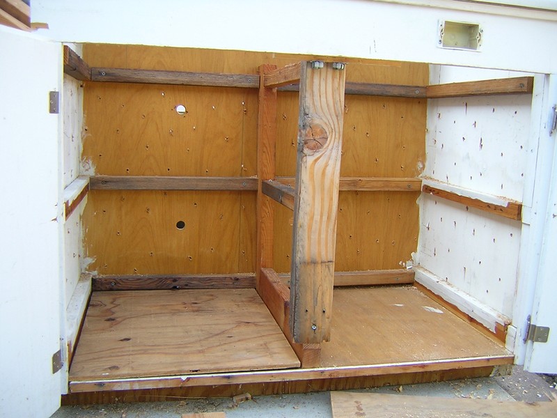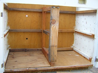 Houseblog: Compost Cabinet - 12 December 2011 - This is a project I did mostly in September and only now got around to making a post. In the first photo you can see the stove cabinet that I hauled out of the kitchen. Previous owners moved the oven to another place and made this thing to hold up the stovetop. It was shrinking the kitchen too much, so I removed it to replace it with something else that I'm still working on. But it occurred to me that this would make a good enclosure for compost. So I removed the stovetop, cut the rest of the top off, and then set them temporarily back on top for the photo.