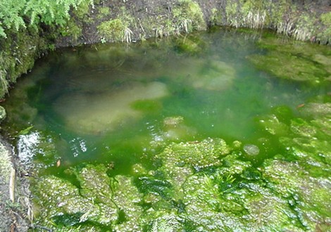 And here's the spring pool itself. I couldn't get a new photo better than this one from April 2006. By June, those mats of algae have turned brown.