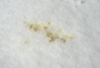 Thaw -- 13 February 2014 -- The last time I opened the hive was early August, half a year ago. That gave the bees plenty of time to gather more stuff, arrange it all for winter, and seal up the hive. In October they still had not kicked the drones out, but they're definitely gone now. I peek in the window about once a week, and I was expecting to see a large population eat their way front to back through the honeycombs, but instead I've watched a declining population stay at the front of the hive. Last week we had an unseasonal deep freeze, and after a night when it got down to -3F (-19C), the bees were clustered so tightly to the ceiling that I was afraid the colony was dying.