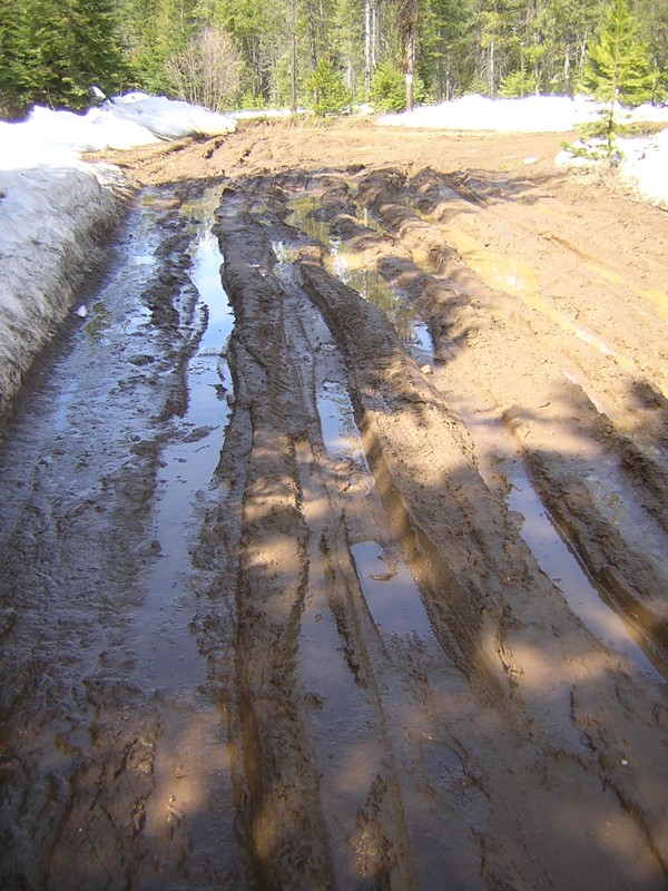 Then, after another muddy stretch, I came to something I did not expect. With a half mile to go, the road ended -- there was nothing but a foot path through the snow. At the final fork, the path went the other way, and I was walking through two foot deep snow where no human had passed in months, only a moose. Sometimes I could stay on top and sometimes my feet sank in. The strange thing was, it was a warm sunny day, at least 60F (16C) with occasional wind that felt like 75.