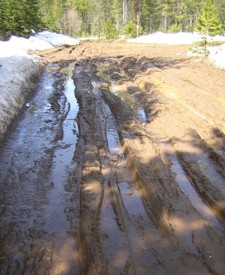 "Epic" is a rock climbing term for a climb that has unforeseen complications and takes much longer than expected. This is the road on the way in, which I did expect, so I had parked the car back at the edge of the pavement and set out on foot over two miles of dirt roads. At this point I was still barefoot, but a bit later the road passed through a shady area and was covered with ice, so I had to put boots on.