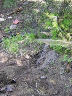 Extending the Spring -- 18 May 08 -- On my last trip to the land a week ago, a guy was grading the road as I was walking in, so this time I knew I could drive all the way in, and I brought up three bags of compost, which I'm beginning to hoard because the price has gone up 20% since last year.