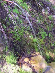 It would be great to extend the spring all the way down through the land in a series of shaded pools, but unless the climate gets wetter, that's impossible in the dry months, and even to do it in May I'd need to get enough clay and organic matter underneath the flowing water to keep it from soaking into the sandy ground. My goal for this year is just to establish a third pool.