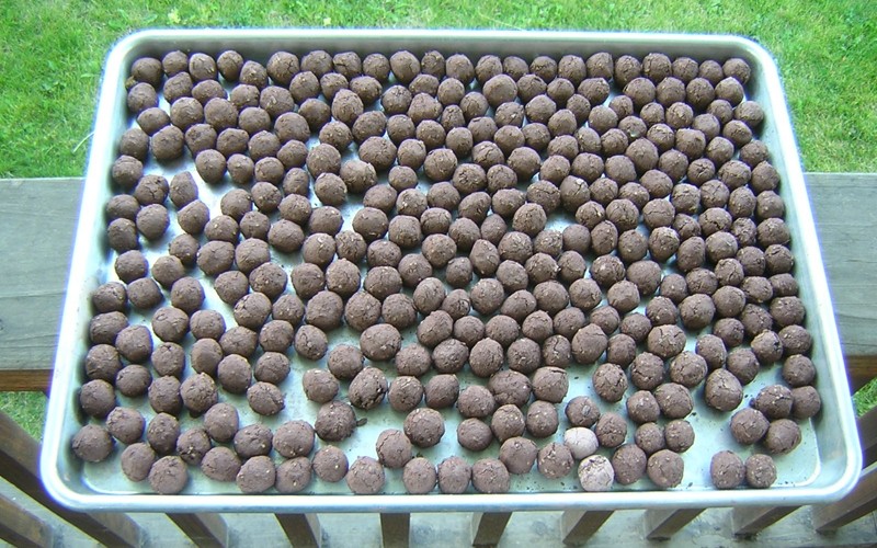 Another problem is that there must be some species of seeds that will start sprouting with a few hours of being wet, and then when you dry the balls the sprouts will die. So you would either have to scatter the balls on a rainy day immediately after making them, or not use those kinds of seeds. But I don't know which ones they are! Seedballs are a new technology and this is one of many areas that still needs a lot of research.