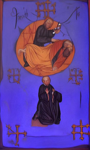 September 30 - October 2. This week I'm wrangling with AI images. For a video project, I wanted a lot of them on the same theme, so I tried several free online image generators, and not surprisingly, almost all the images were lame. While trying to get better images without running into paywalls, I downloaded a desktop program called Easy Diffusion, and the results were even worse. But it has a feature where you can set an initial image and apply a prompt, so at some point I decided to try something random. I took a phrase I got earlier in the day from bibliomancy, "the death of the bishop", and impulsively picked an image from my colorscapes folder, Carving the Crescent. The result was this strange Medieval image. I liked it so much that I used the same prompt to make a bunch more images, all of which were lame, but I was hooked. Everyone thinks of AI as an agent of control, whether for good or evil. But given how hard it is to create exactly what you want, and how easy it is to create something surprising, I'm seeing AI as an agent of chaos.