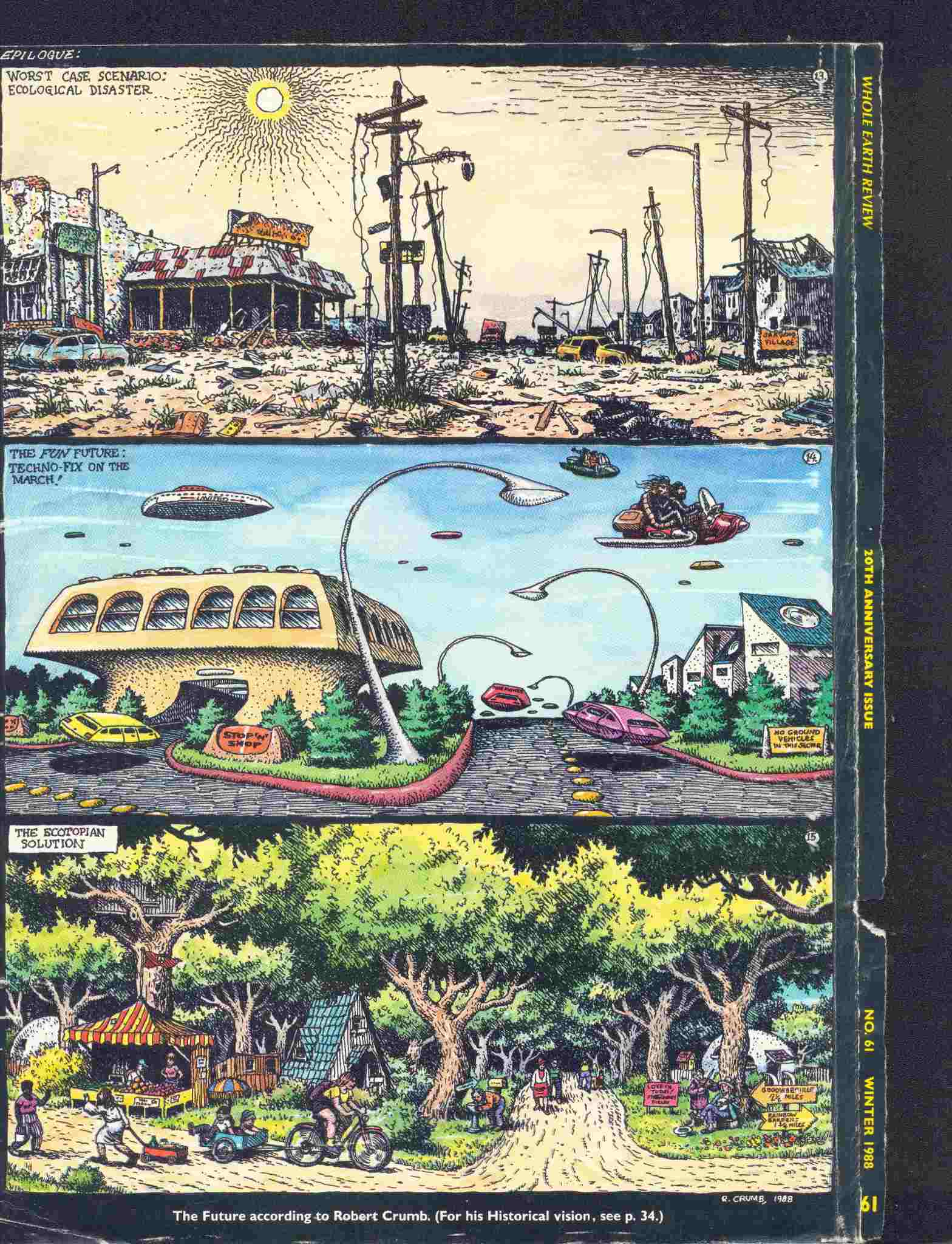 November 27. It's been years since I've looked at this famous R. Crumb drawing of three possible futures, which are a sequel to Crumb's Short History of America.