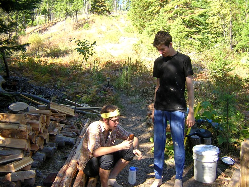 On Friday, I drove the guys back to Spokane and dropped them at the Maple street on-ramp. I went into McDonalds to use the bathroom and when I came out they were already getting a ride! At this point, while I'm still open to visitors, the weather will determine whether I finish the structure before winter.